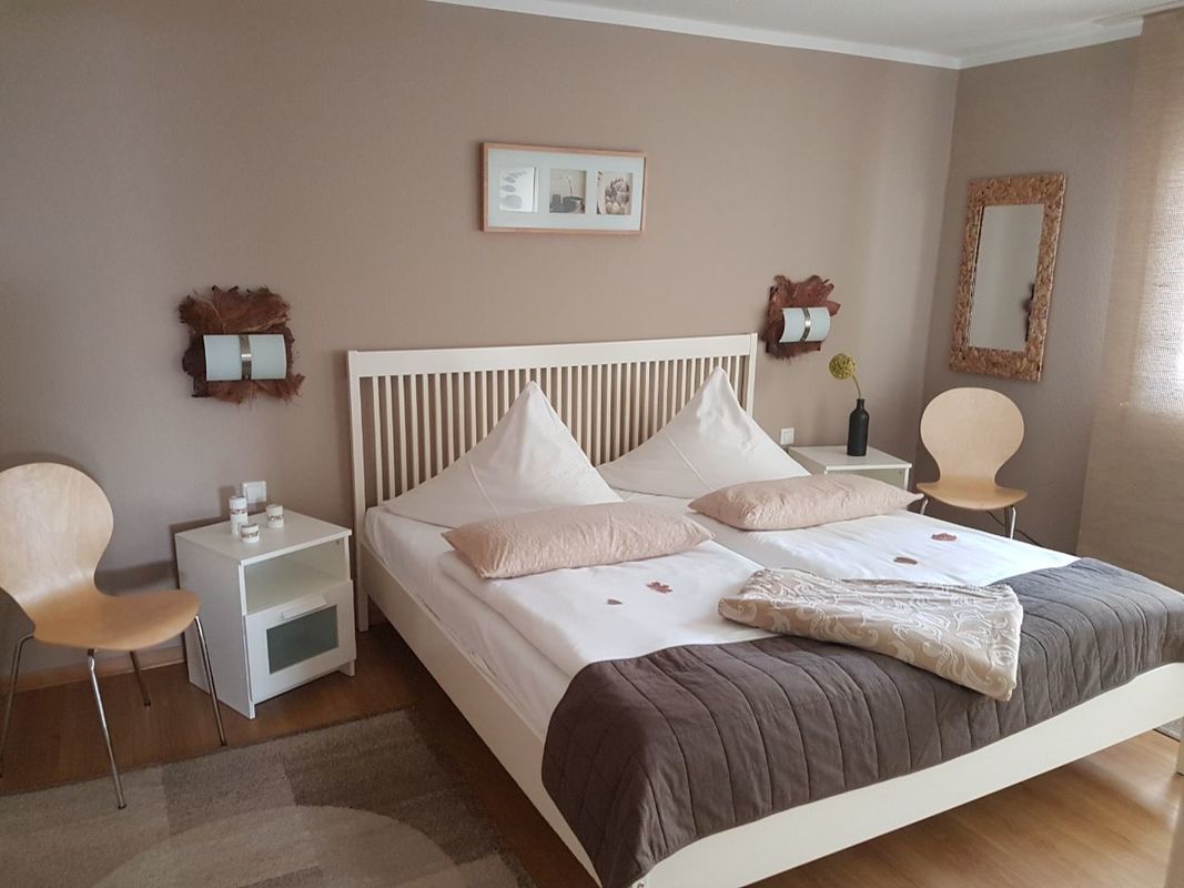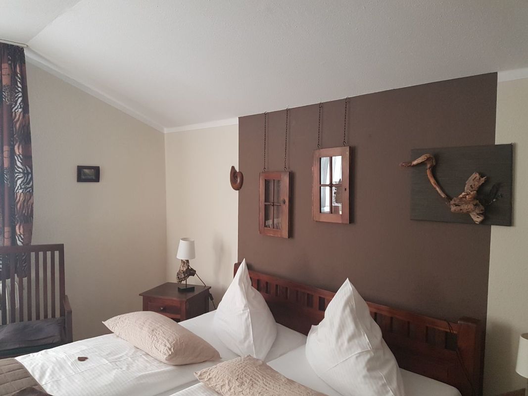 Im grosszügig angelegten Frühstücksraum bietet sich Ihnen eine wohltuende und entspannte Atmosphäre, die sich in warmen Farben und mit liebevollen Details durch die individuell gestalteten Zimmer erstreckt.Die Akazienholzmöbel in den Doppelzimmern lassen ein leicht afrikanische Urlaubsgefühl aufkommen. Eine kleine Bücherei für jung und alt sorgt für Abwechslung .